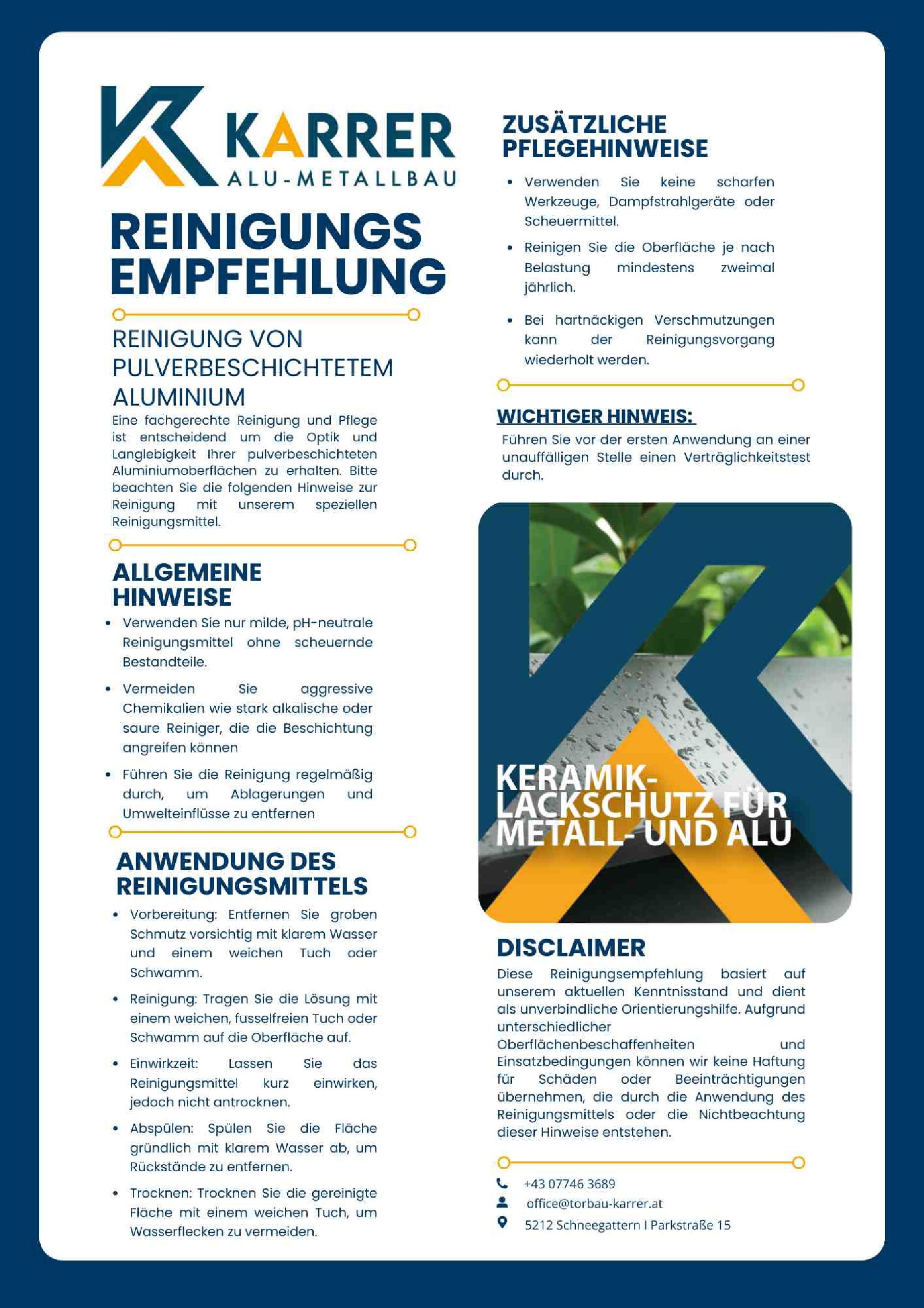 Mit dem neuen KARRER Keramik-Lackschutz bieten wir ein speziell entwickeltes Reinigungsmittel für pulverbeschichtetes Aluminium, das Oberflächen nicht nur gründlich reinigt, sondern auch nachhaltig schützt.