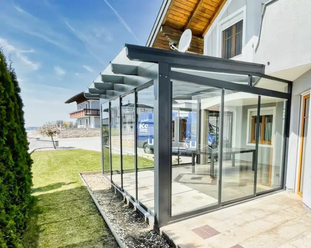 Die Sommergärten von Karrer werden aus hochwertigem und pulverbeschichtetem Aluminium gefertigt, das durch seine Langlebigkeit, einfache Pflege und Rostfreiheit punktet. Selbstverständlich können Sie das Aluminium in Ihrer Wunschfarbe wählen und auch die beliebte Holzoptik ist möglich. Den Sommergarten aus Aluminium müssen Sie nicht streichen und die Reinigung ist denkbar einfach. Die integrierten Glasschiebeelementen können Sie bei warmen Temperaturen öffnen und bei kühlem Wind oder Regen schließen.